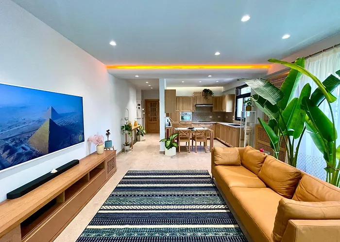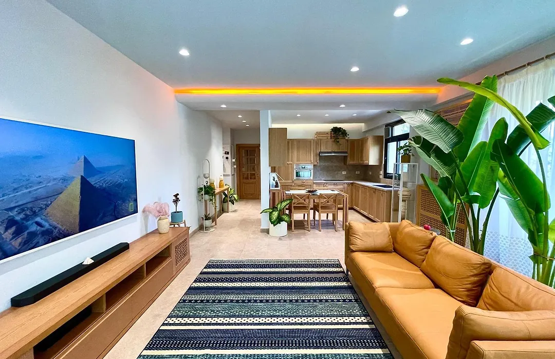 Aaru Maadi Luxe Retreat Apartment Cairo overlooks the garden and is situated merely a 5-minute walk from St.John the Baptist Episcopal Church. This spacious 120 m² apartment offers a Jacuzzi for guests to enjoy during their stay.